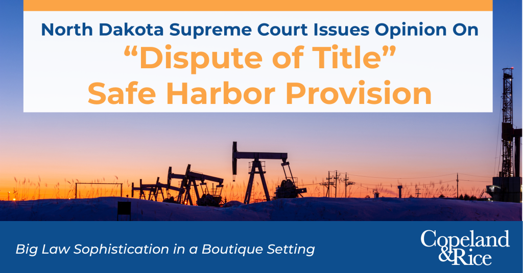 Last month, the North Dakota Supreme Court issued an opinion interpreting the “dispute of title” safe harbor provision found in North Dakota’s payment of proceeds statute.